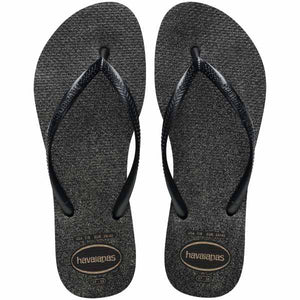 Havaianas Slim Gloss Black/Silver Women's Flip Flops: Soft Comfortable Sole